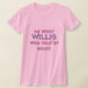 Pink tee shirt with dark pink and blue lettering. The caption says: IM WHAT WILLIS WAS TALK'IN BOUT!