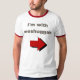 Forget about "I'm with stupid" this funny Jewish humour t-shirt says "I'm With Meshuggah" with an arrow. Sure to crack a few smiles.