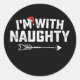 I'm With Naughty Matching Christmas Couples Classic Round Sticker