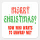 The words Merry Christmas in a festive text followed by the question "Now who wants to unwrap me?"