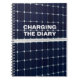 Closeup view of a solar power panel to generate ecologically clean and renewable energy to feed street lamps and other devices. Deep blue background and a white grid. Funny customisable journal. You can change or delete the template text Charging the diary.