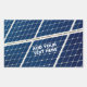 Closeup view of a solar power panel. Sunny day. Blue and white colours. Customisable sticker for anyone. You can change or delete the template text.