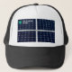 Closeup view of a solar power panel to generate ecologically clean and renewable energy to feed street lamps and other devices. Deep blue background and a white grid. Funny trucker hat. Customisable. You can change images and you can change or delete the template text Full system charge. Have fun!