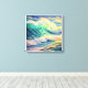 This image is a highly vibrant and dynamic digital painting of a large, curling ocean wave at sea, likely during sunrise or sunset.