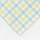 "Image showing the front and back of a fabric swatch. The front features a light blue and yellow plaid pattern, while the back is plain white with slight wrinkles."