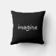 "Imagine" artsy pillow. Black and what background lettering with tree, black bird and a burst of red hearts with peace symbol design. Back of pillow is black with the word "imagine".