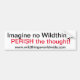 The 'Imagine' bumper sticker says it all. Buy 'Imagine no wildthings' with 25% of sales donated to animal welfare organizations. Help make a difference. To ADOPT and /or DONATE to an endangered animal go to 'links' on the homepage at www.wildthingsworldwide.com.