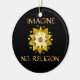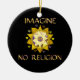 Gold and bronze lotus with purple and violet highlights and a purple peace sign in the middle asks you to "Imagine No Religion."