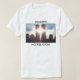 Make a statement, based on Lennon's song, about how the world would be a better place without religion. light t-shirt with words and image of twin towers.