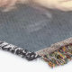 A quality printed throw has its advantages. This is a much finer weave throw than its loopier cousins, and though lighter, it is worth the investment for custom room accessorizing. The back is much prettier than the typical brown, and the fringe on the long sides very vivid, the selvage nicely done. Before photographing, I washed the throw in cold water, delicate, with a thicker woven throw the same size. On tumble dry low, this throw was dry in half the time as the other. This is a very practical quality if you use throws for furniture covers or to wrap up in frequently. The sleekness of the fabric makes it a great layer for accenting or protecting without the feeling of sitting on too much stuff. Perfect for napping or when you feel a light chill coming on. The color printing is beautiful and on this fabric, matched the design and color of my Photoshop image. This is an advantage for blending room fabrics and colors. The fringe on the short sides prints the colors from the design image and therefore varies from the side fringe. I streaked a white fractal line through the plaid pattern to give the illusion of weaving. This printed as crisp as an illusory thread, and put some white in the short side fringe, showing another advantage of print vs loomed- for artistic purposes, line lines, detail, and color integrity can be planned and preserved. My loomed throws have color limitations and more of a needlepoint texture. Print throws reproduce an exact image. The throw felt a little stiff straight out of the package, but this went away in the first delicate wash. Of course I searched the wash water for ink or bleeding and there was none.