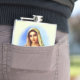 Well made flask, a little better than I had expected. Flask came in clear plastic box which gave it a nice presentation when I took it out of the zazzle packaging. Image is not printed on flask but on sticker. Don't know how this will hold up I haven't used it yet. This would make a Great gift! I plan to purchase more for friends! Cheers. I thought a little brighter than computer. Very crisp, writing wasn't