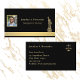This black and gold elegant business card template is designed for an immigraton attorney, lawyer, legal aid, service assistant,or other advocate with its gold outlne of the Statue of Liberty. It also features a placeholder photo for you to replace with your own, as well as text templates where you can type your own details. On the back, there's also a small golden scale, but if you have a small logo, you can replace the scales wth your own logo.