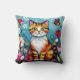 Impasto Cat, Flowers & Butterfly Cushion