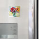 impasto style vase of pretty vibrant colourful flowers. Hang up your notes and photos on your frig or in your locker with this pretty floral magnet.