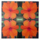 The original pattern on this 6” Ceramic Tile was created from an original photograph by ZoeSPEAK of an impatiens flower. The six petals of the flower are vermilion red, with a deeper red centre and a hint of purple. The background is made up of the leaves of the plant, in various shades of green.