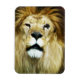 A digital painting depicts some flaws an aging lion may have. His mane is dis-shuffled. He has scars. He roars a lot. There is no background for this image, you may choose any colour you would like.