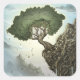 A tree grows high on the edge of a mountain, clouds above and clouds below. Resisting gravity and erosion, the tree spreads its limbs towards the sky, twisting to grab the impossible hope of life in the air above the rock. By Paxdomino