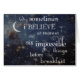 The Alice in Wonderland Through the Looking Glass quotation "Why sometimes I believe as many as six impossible things before breakfast" in great fonts along with a bright crescent moon on a string and wishful dandelions appear on a background of deep blue starry space to make a magical design. Blank inside for your own personal message. Matching items and many other Alice in Wonderland designs are availble in my Zazzle store.