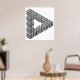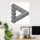 This poster features an impossible triangle optical illusion, made of grey cubes. The background colour can be changed if desired.