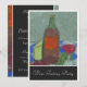 A bottle of red wine sits on a blue and white chequerboard tablecloth in this impressionist still life. Surrounding the green glass bottle are bunches of red and white grapes, a wedge of cheese and a clear glass filled with red wine. The customisable text can easily be changed to suit your own needs. From my original digitally created image.