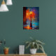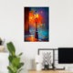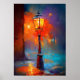 A vibrant impressionist painting of a glowing street lamp lighting a quiet city street at night. Warm colors and expressive brush strokes create a romantic urban atmosphere perfect for modern wall decor.