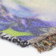A quality printed throw has its advantages. This is a much finer weave throw than its loopier cousins, and though lighter, it is worth the investment for custom room accessorizing. The back is much prettier than the typical brown, and the fringe on the long sides very vivid, the selvage nicely done. Before photographing, I washed the throw in cold water, delicate, with a thicker woven throw the same size. On tumble dry low, this throw was dry in half the time as the other. This is a very practical quality if you use throws for furniture covers or to wrap up in frequently. The sleekness of the fabric makes it a great layer for accenting or protecting without the feeling of sitting on too much stuff. Perfect for napping or when you feel a light chill coming on. The color printing is beautiful and on this fabric, matched the design and color of my Photoshop image. This is an advantage for blending room fabrics and colors. The fringe on the short sides prints the colors from the design image and therefore varies from the side fringe. I streaked a white fractal line through the plaid pattern to give the illusion of weaving. This printed as crisp as an illusory thread, and put some white in the short side fringe, showing another advantage of print vs loomed- for artistic purposes, line lines, detail, and color integrity can be planned and preserved. My loomed throws have color limitations and more of a needlepoint texture. Print throws reproduce an exact image. The throw felt a little stiff straight out of the package, but this went away in the first delicate wash. Of course I searched the wash water for ink or bleeding and there was none.