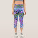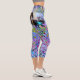 Impressionistic Chartreuse and Aqua Garden Flowers Capri Leggings