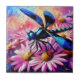 Impressionistic Dragonfly On Pink Daisies Floral Tile