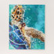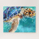 Impressionistic Sea Turtle Tropical Nautical Teal Jigsaw Puzzle
