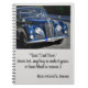 Father's Day, Birthday, Just Because, a unique gift for anyone who enjoys vintage classic cars. A standard 6.5" x 8.75" spiral notebook with photo print of an attractive blue foreign automobile. The background is a platinum colour, the back is white. A unique gift for vintage car fanatics or those who collect classic car memorabilia. Easily change or remove text to make it yours using the Template provided. This daybook contains 80 pages, college lined in black. See "About This Product" for more information. I purchased this for my SIL, the printing is excellent!