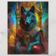 At the centre of the flyer are two magnificent artworks, one showcasing a majestic black wolf king and the other depicting a noble German Shepherd dog. Both illustrations capture the regal and powerful presence of these breeds, highlighting their strength, intelligence, and beauty.