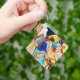 The key chain is made of metal and really sturdy. The flower design is really cheerful. The logo and colors are clear and crisp!