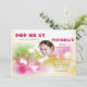 Lots of bubbles in green, pink and yellow with one open bubble in the middle for your favourite photo. A happy invitation that's perfect for a birthday.