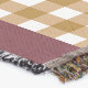 A quality printed throw has its advantages. This is a much finer weave throw than its loopier cousins, and though lighter, it is worth the investment for custom room accessorizing. The back is much prettier than the typical brown, and the fringe on the long sides very vivid, the selvage nicely done. Before photographing, I washed the throw in cold water, delicate, with a thicker woven throw the same size. On tumble dry low, this throw was dry in half the time as the other. This is a very practical quality if you use throws for furniture covers or to wrap up in frequently. The sleekness of the fabric makes it a great layer for accenting or protecting without the feeling of sitting on too much stuff. Perfect for napping or when you feel a light chill coming on. The color printing is beautiful and on this fabric, matched the design and color of my Photoshop image. This is an advantage for blending room fabrics and colors. The fringe on the short sides prints the colors from the design image and therefore varies from the side fringe. I streaked a white fractal line through the plaid pattern to give the illusion of weaving. This printed as crisp as an illusory thread, and put some white in the short side fringe, showing another advantage of print vs loomed- for artistic purposes, line lines, detail, and color integrity can be planned and preserved. My loomed throws have color limitations and more of a needlepoint texture. Print throws reproduce an exact image. The throw felt a little stiff straight out of the package, but this went away in the first delicate wash. Of course I searched the wash water for ink or bleeding and there was none.