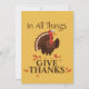 Celebrate and give thanks this Thanksgiving with "In All Things Give Thanks", and cute Thanksgiving turkey design. Colourful golden yellow background compliments fall holiday colours and leaves.