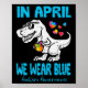In April We Wear Blue T Rex Dinosaur Autism Awaren Poster