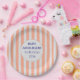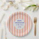 In Bloom Coral Stripe Baby Shower Personalized Paper Plate