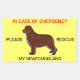 Newfoundland Dog - in case of emergency safety stickers. Invaluable for your home windows, car windows, bumper or dog's crate. It could save your Newfoundland's life for rescuers to realise you own or have a gentle Newfoundland Dog and not a grizzly bear!