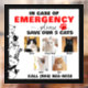 In case of fire, accident, or emergency situation, you can help first responders account for your furry family members with this handy door sign. For the multi-cat household with five kitties, this chart shows each cat's name and visual photo for easy identification. Complete with customised phone number contact detail and easy to place on windows or other smooth glass surfaces. "In case of emergency, please save our 5 cats."