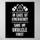 This Funny Ukulele Hawaiian Musician design reads in case of emergency save my ukulele first. Perfect for a ukulele player and ukulele musician who loves playing the Hawaiian aloha ukulele