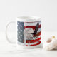 Coffee Mug featuring In God We Trust compilation of photos of the American Flag, a church steeple with cross, a flying bald eagle, and the full pink super moon moon. Looking for more prints or products? Feel free to visit my store: http://www.zazzle.com/timelessmomentsphtgy This photo was created by Jennifer White with Timeless Moments Photography. All images are copyrighted © Timeless Moments Photography/Jennifer White. All rights reserved.