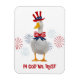 This fun festive christian patriotic magnet has a white pekin duck wearing an Uncle Sam hat and a girlie USA flag bow tie. The words "In God We Trust" are in a fun trendy font and can be changed to copy of your choice.