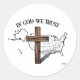 In God We Trust with rugged cross and US outline Classic Round Sticker