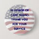 In honour of your service, rest in peace, in memory of , personalised veteran's day or memorial day military button. Honour your troop or family member who was lost or who still serves to protect or freedoms and rights.