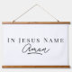 In Jesus Name Amen Christian Bible Quote on a Wood Tapestry Scroll Sign for Your Modern Home!