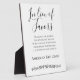 This modern and elegant "in lieu of favours" standing plaque is a wonderful way to let your guests know that instead of favours, you've made a donation to your favourite charity in honour of them, on your wedding day.