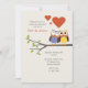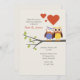 A casual anniversary party invitation that's perfect for any season. It features a cute owl couple on a branch with hearts above them. (FP)