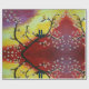 Painting with birds couple, nest and blossomed tree on a beautiful sunset background on a wrapping paper