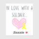 "In Love With a Soldier" pink heart and yellow ribbon sticker for the new or seasoned military spouse!