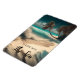 Turquoise water and palm trees on a white sandy beach magnet art. Quote: "In love with the sea."